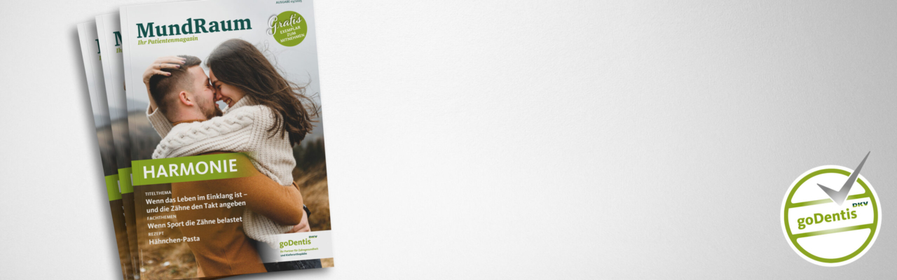 Harmonie. Das ist das Motto der aktuellen MundRaum. Das Patientenmagazin liegt bei allen teilnehmenden Zahnärzten im Wartezimmer aus. Wer möchte, kann es jetzt schon online lesen.